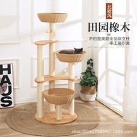 Massief Houten Kattenklimframe Kattenbed Kattenboom Geïntegreerd Verticaal Kattenrek Sisal Verticaal Geweven Mand Houten Kattenbenodigdheden Speelgoed